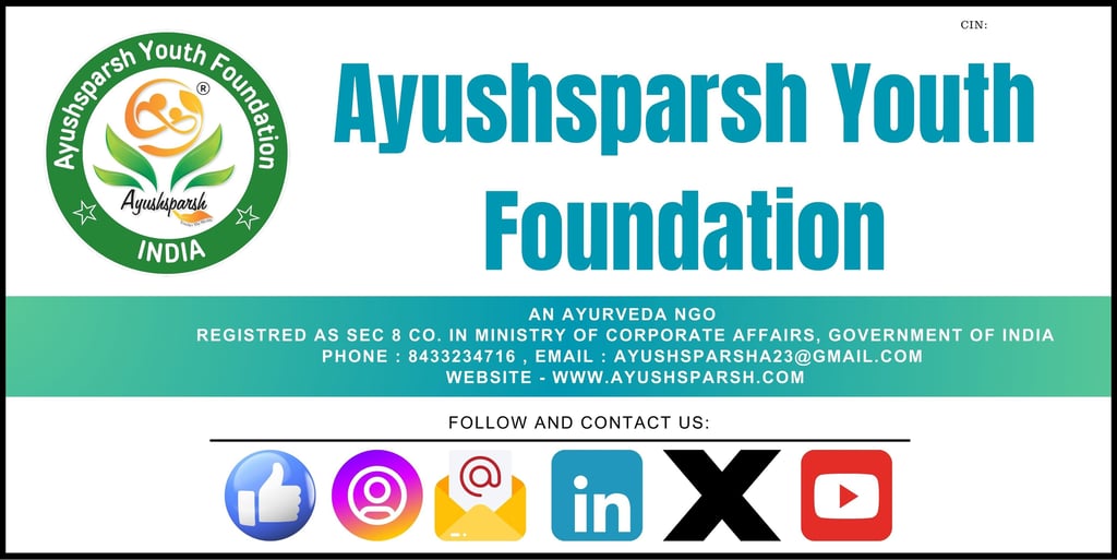 Ayushsparsh Youth Foundation is a Section 8 (Non-Profit) Company registered under the Ministry of AYUSH, Government of India, and listed on NGO Darpan. The Foundation is dedicated to promoting Ayurveda awareness, holistic healthcare, and employment generation through structured education, skill development, and community outreach.